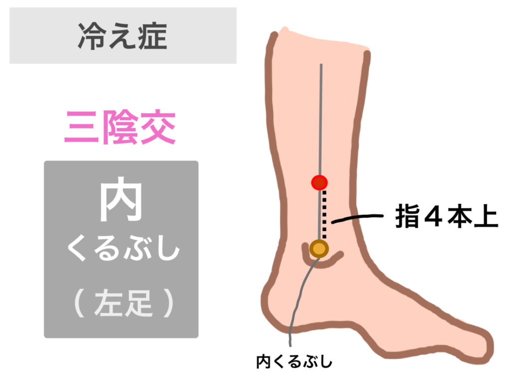 ・ 内くるぶしから、指4本分上にあります。