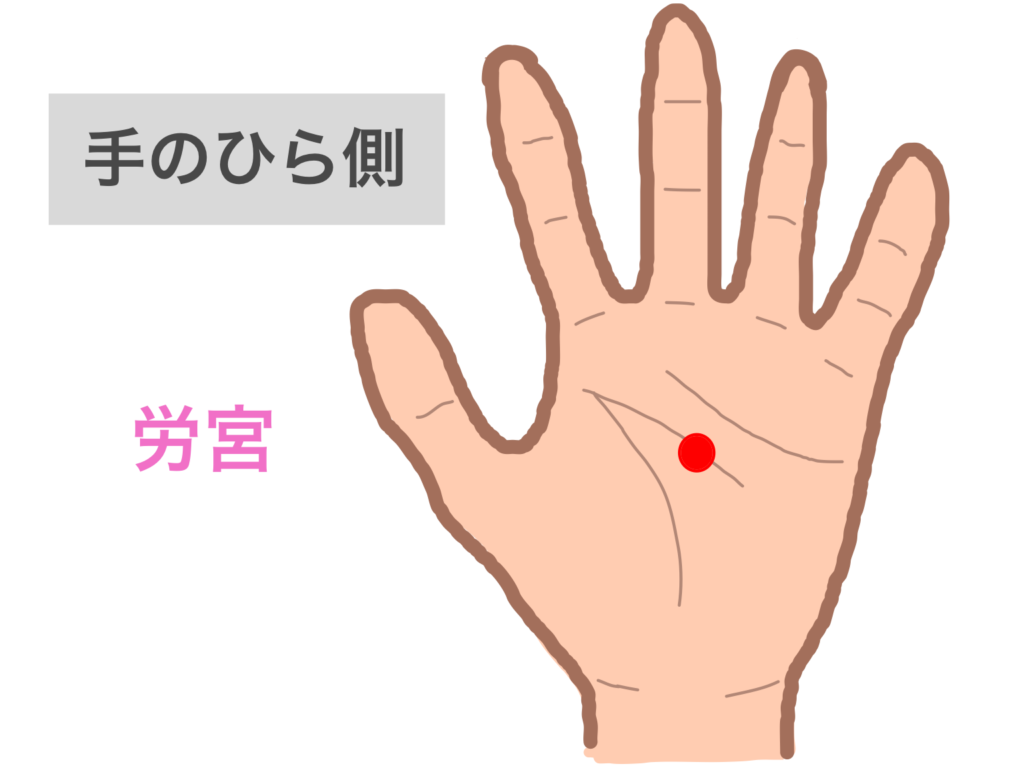 ・ このツボを中心に、手のひら全体を痛気持ちいい程度の強さで押してください。